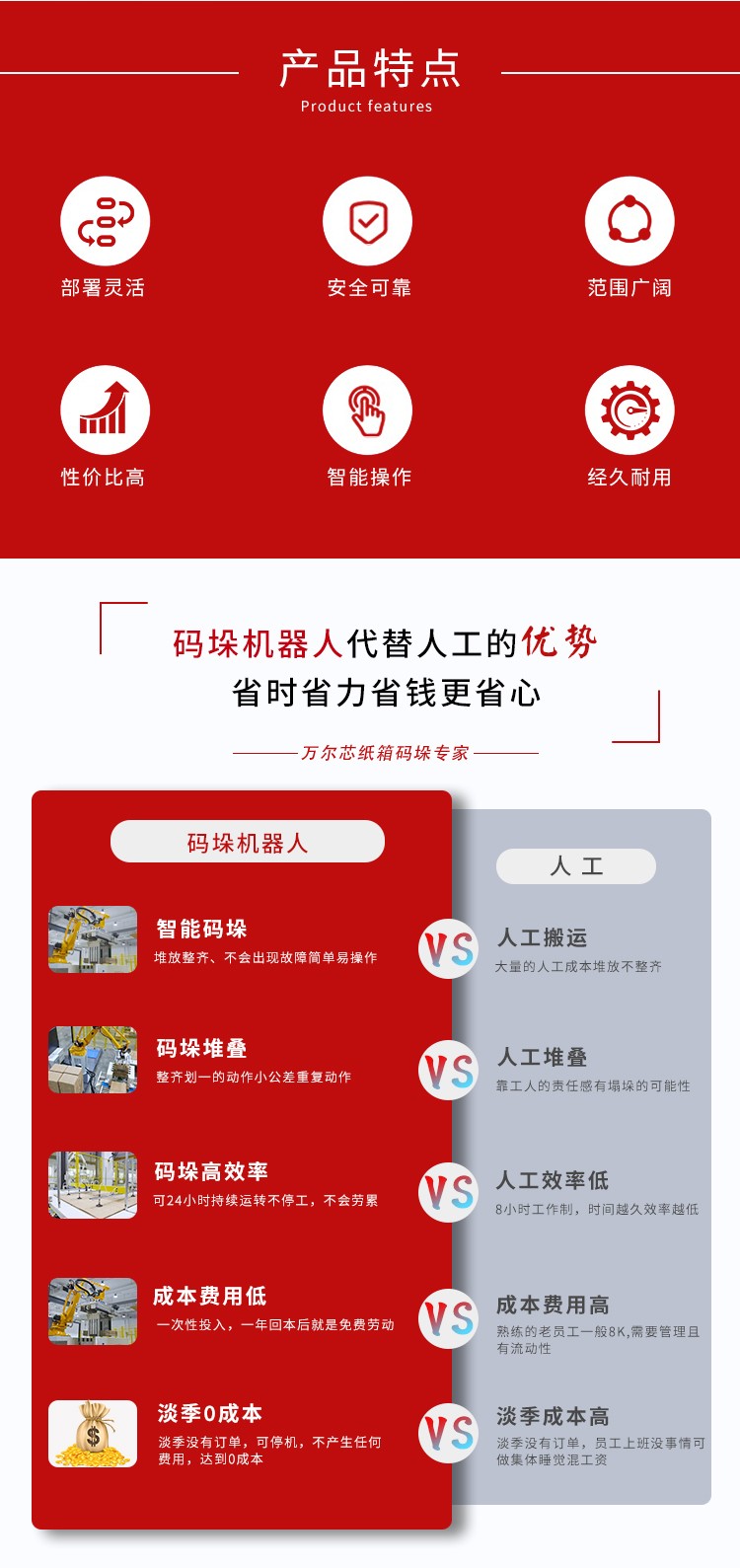 與傳統(tǒng)的機器人相比,協(xié)作碼垛機器人具有以下特點: